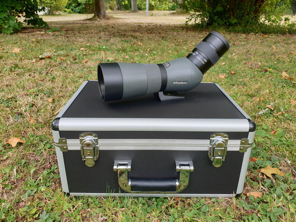 The Titanium 65 ED II telescope has a tripod with a standard 1/4" photographic thread and is rotatable. This type of mounting allows the telescope to rotate freely around its longitudinal axis, which greatly enhances image framing. An optional photographic adapter is produced for the spotting scope, allowing any SLR camera to be connected via a T-ring, purchased separately depending on the type of mount (bayonet type) used by the camera manufacturer. The whole is placed in an elegant aluminum case, which protects the device during transport. Of course, as befits true nature's equipment, the telescope's body is made of metal and finished with odourless, anti-allergenic grey-green rubber tyres. The body is completely watertight and the inside of the telescope is filled with nitrogen containing no water vapour - which eliminates the problem of fogging up the optical elements inside the telescope.